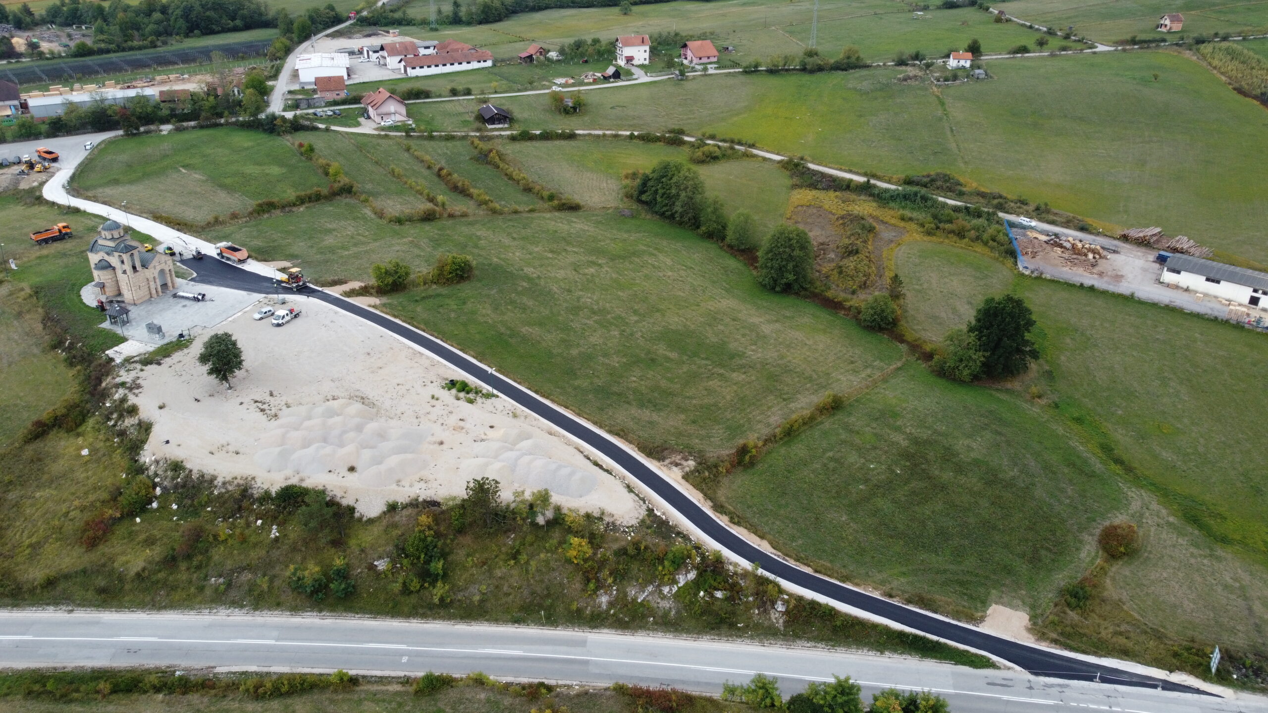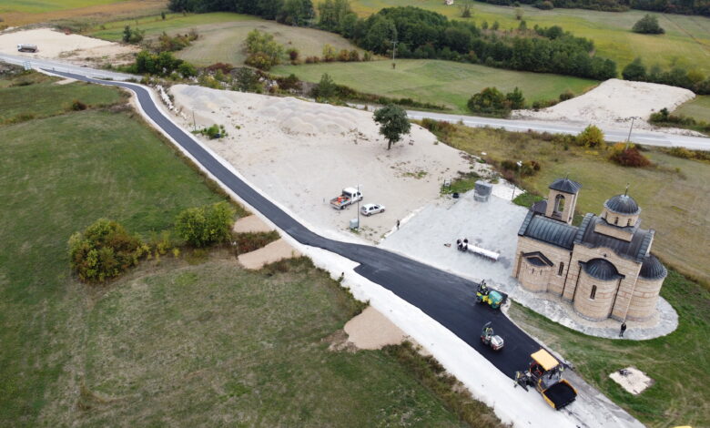 Asfaltiran put i parking kod Hrama Svete Marije Magdalene u Šljivovici