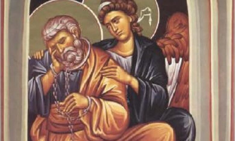 Irod je, prema predanju, Petra bacio u tamnicu i naredio da stoji okovan između dva vojnika i čeka suđenje. Međutim, noć pred izvođenje na sud, priča kaže, pojavio se anđeo i ti okovi su sami od sebe spali sa svetitelja.