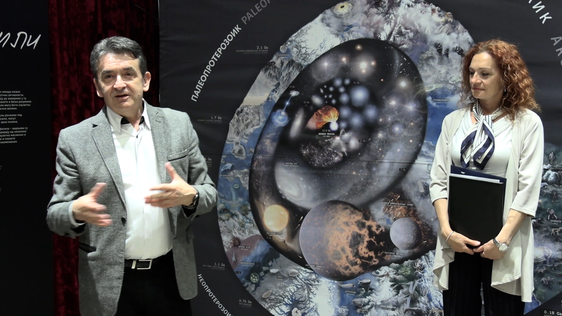 „Inspiracija je za mene došla iz neuobičajenog mesta – od dece, od jednog vrlo specifičnog uzrasta, otprilike četvrtog ili petog razreda osnovne škole. Radeći sa njima, uvideo sam da njihovo znanje na ovu temu prevazilazi sva moja očekivanja. Oni sve znaju o dinosaurusima, možda čak i više nego ja, ali uvek imaju ono potpitanje: kako se nešto sačuvalo do danas i kako mi uopšte znamo za to? Na osnovu fosila možemo da rekonstruišemo u kakvoj sredini su živele tadašnje životinje i kako je izgledala naša planeta. Najstariji fosil koji se nalazi ovde je stromatolit; to je stena sačinjena od algi. To su neki od prvih organizama koji su počeli da naseljavaju našu planetu i dokaz da život na Zemlji traje oko tri i po milijarde godina“, rekao je Ranko Pejović.