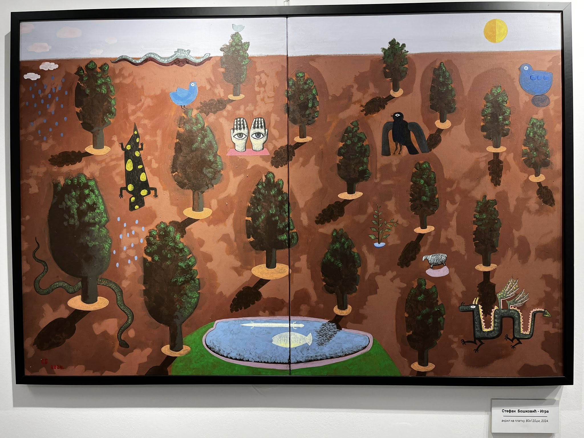 Na izložbi su prikazana dela umetnika: Naoda Zorića, Jelene Glogovac Savić, Kristine Pirković, Sare Nikolić, Ane Lazić, Damjana Kovačevića, Danke Dimitrijević, Ljiljane Rivić, Marka Kusmuka, Marka Tubića, Dragana Batinića, Veljka Valjarevića, Tanje Pikule i drugih, čiji radovi pružaju raznovrsan umetnički preskok i uvid u savremene likovne tendencije.