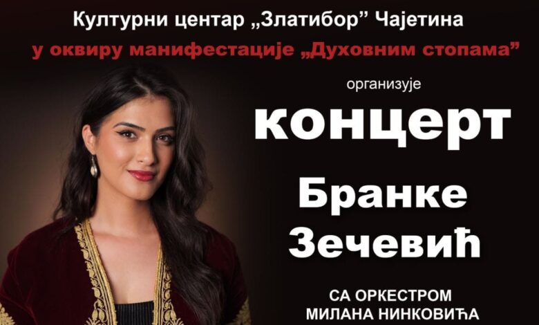 U okviru manifestacije ,,Duhovnim stopama“, koncert Branke Zečević, etno-pojca, sa orkestrom Milana Ninkovića, biće održan u sredu, 14. januara, na Kraljevom trgu, na Zlatiboru.