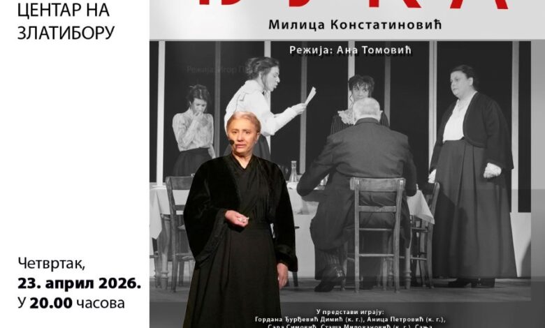 Naredni događaj zakazan je za utorak, 28. april u 20 časova, kada će Domu kulture u Čajetini biti izvedena predstava „Pale zvezde“. Ova savremena dramsko-satirična priča bavi se odnosom umetnosti i tržišta, a u njoj igraju Miloš Vlalukin, Marijana Mićić i Katarina Radivojević.
