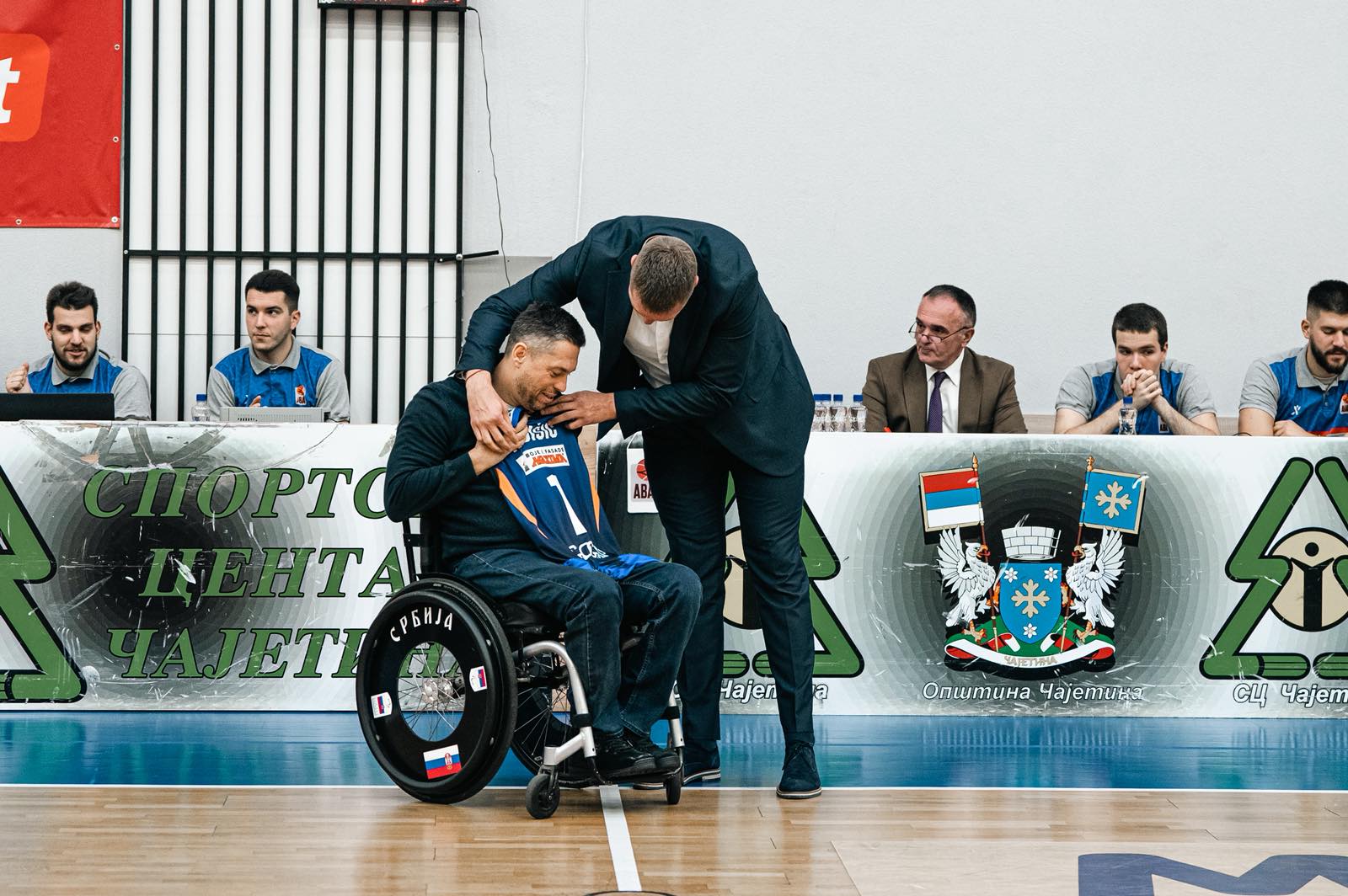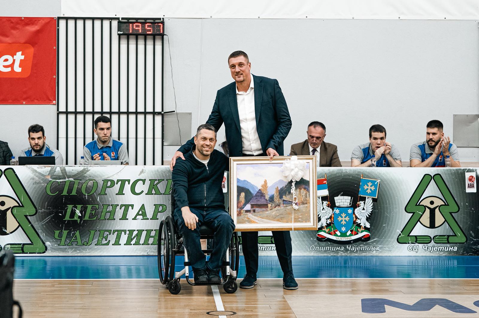 Našeg svetskog šampiona, simbola istrajnosti i snage, dočekala je publika u Čajetini uz dug aplauz. U znak poštovanja i divljenja, sportski direktor Aleksandar Jevđić uručio mu je umetničku sliku i dres KK Zlatibor – gest zahvalnosti i podrške našem velikom sportisti.