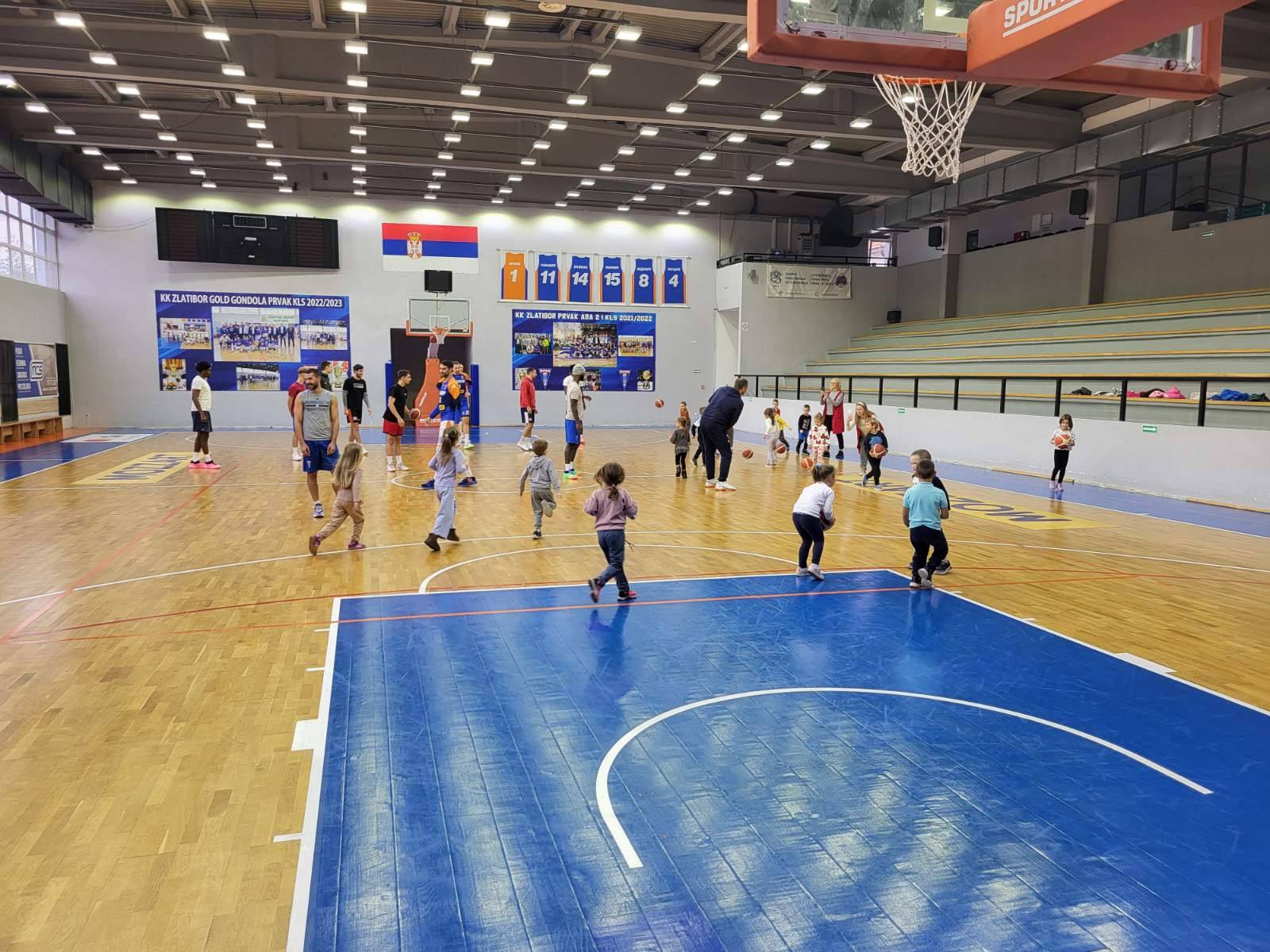 Prvotimci KK Zlatibor Mozzart, sa trenerom Strajinom Nedovićem, su na jutarnjem treningu ugostili mališane iz vrtića Radost u Čajetini. Košarkaši su ovo jutro proveli družeći se sa decom kojima su podelili majice i pokazali kako se izvodi šuterski trening.